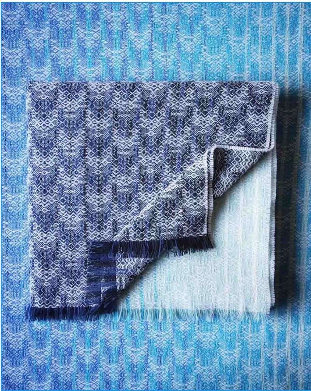 Blending heritage hand-weaving techniques with contemporary textile design, Lucy MacDonald of Arra Textiles creates collections inspired by landscapes and seascapes. Made from soft Merino wool, the Evelix Blanket in ecru (the colour of natural linen) features a complex woven design which becomes more detailed and delicate the closer it is viewed.