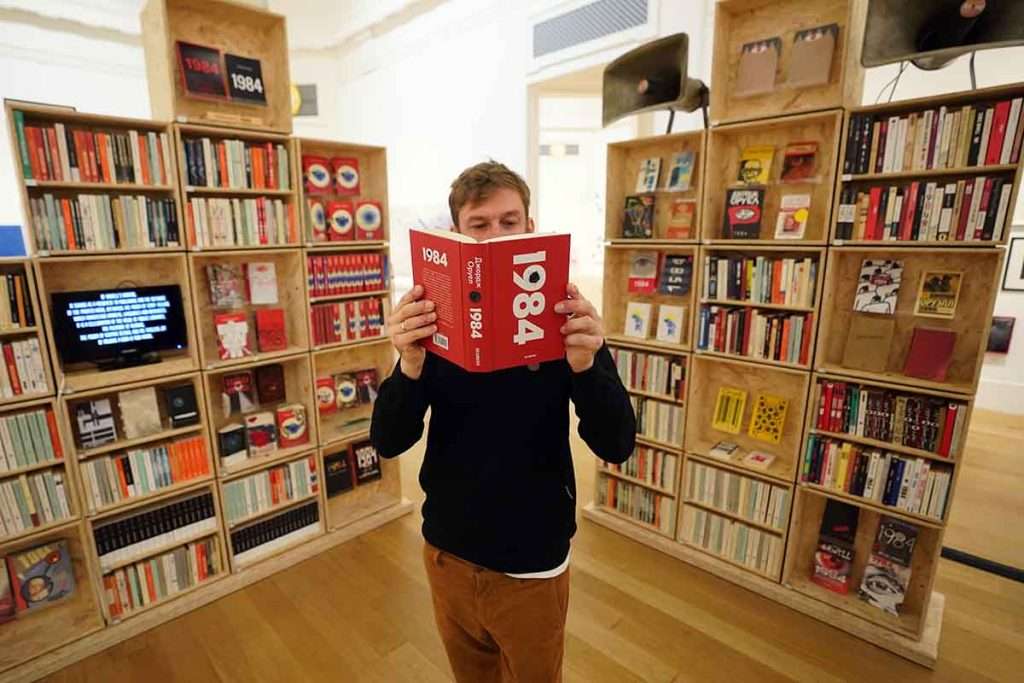 Visitors are invited to pick up and read some of the 1,984 different copies of the book, donated and sourced from around the world, some in mint condition, or dog-eared, tea-stained, inscribed, annotated and graffitied art works, as they browse around this interactive library and engage in literary conversation. A graphic version was presented by Orwell’s son Richard Blair, and there’s a 1940s typewriter, the same model Orwell used. 75 years on, Orwell’s warning about political dictatorship suppressing personal freedom is more timely than ever. Such an imaginative, thought-provoking cultural concept.