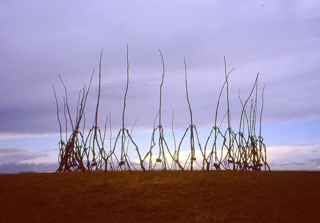 The launch exhibition, co-curated by the Wyllieum’s Director Will Cooper and Sarah Barker, looks at Wyllie’s Spires series of outdoor sculptures – a three-legged base with a vertical pole, held in balance by a rock or stone.