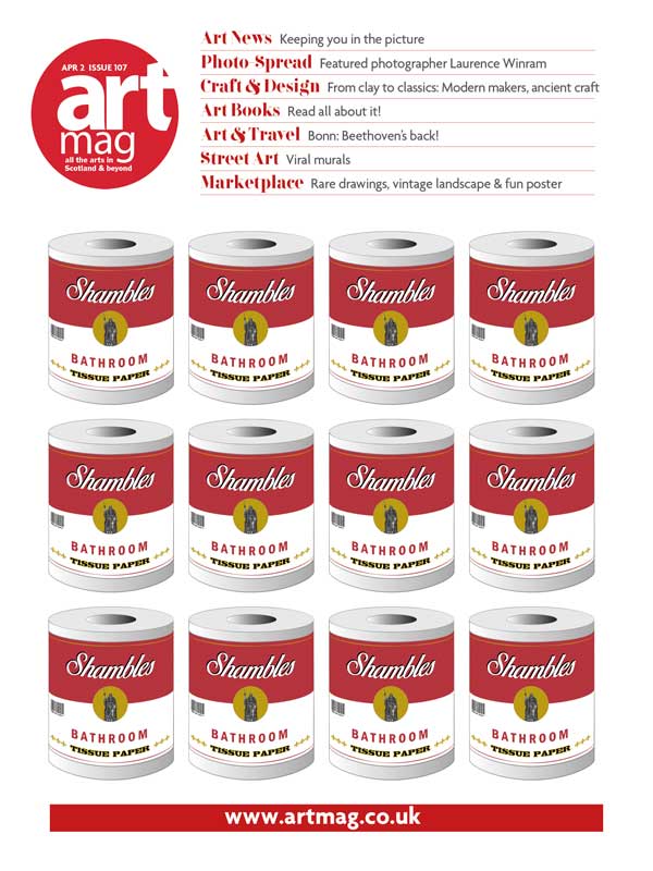 PLUS Web solutions for galleries and artists…Send your artwork with the experts…Scottish Portrait Awards winners…Art for ‘Under a Hundred’ at Clience Studio…New move to develop Scottish musicals…Artists design scotch whisky packaging – AND MUCH MORE!