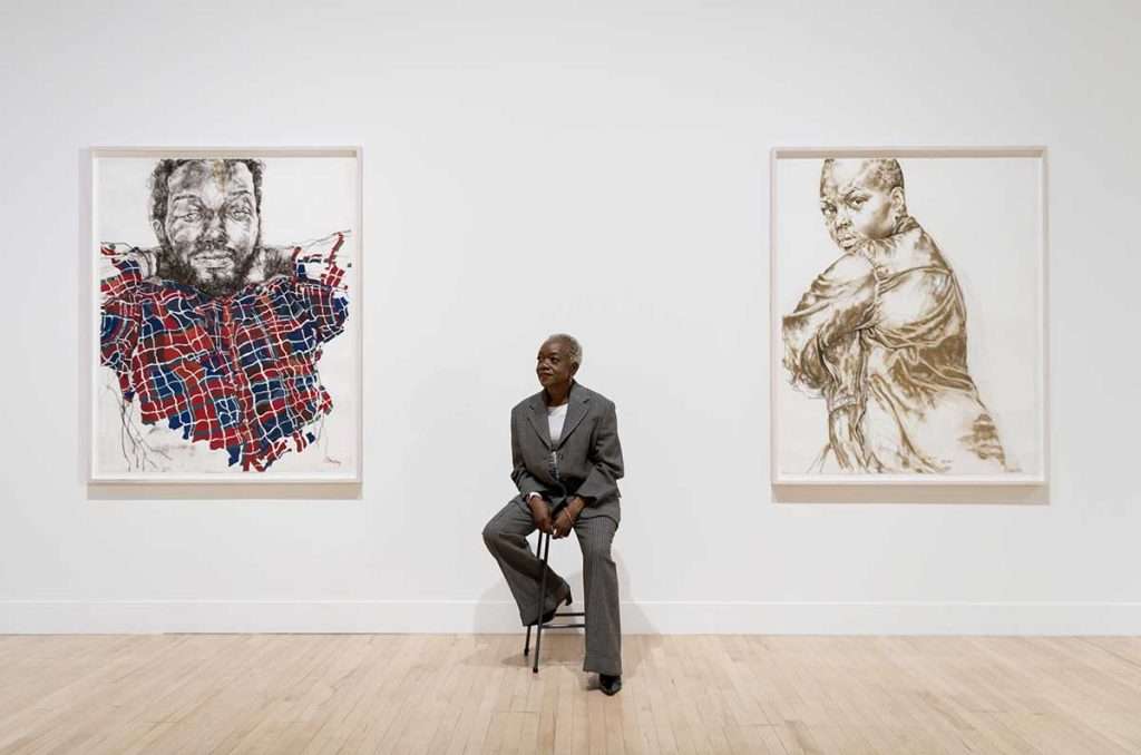 It’s something of a relief to emerge into Claudette Johnson’s show, a traditional exhibition of figurative paintings. Johnson, a member of the Black Art movement in the 1980s, paints (or draws – her works are mixed media) large-scale works of black people, often women, claiming for them a place in museums and galleries where they are under-represented. They are beautifully made and evocative, and many critics have tipped her as the favourite to win when the announcement is made on 3rd December.