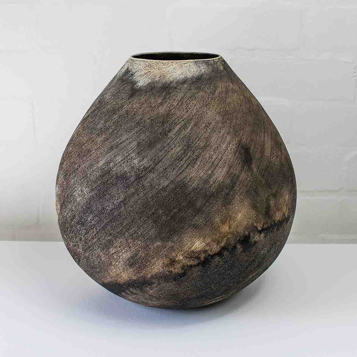 Ruth Elizabeth Jones makes large, hand-built statement pieces which are coil-built and smoke-fired.