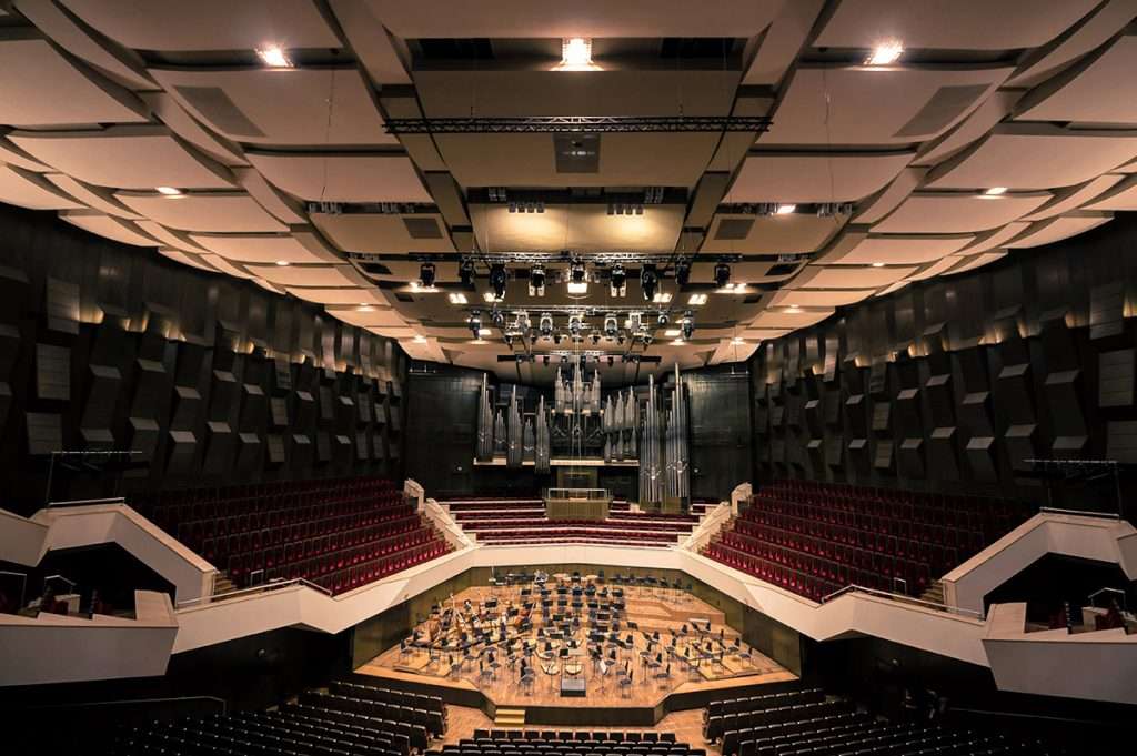 Designed by local architect Rudolf Skoda and opened in 1981, the third Gewandhaus Concert Hall is an exemplar of modern, acoustically-attuned architecture, and was commissioned in response to the Gewandhausorchester’s then-musical director Kurt Masur, who insisted on a fittingly world-class performance space for his Orchester as a condition for taking-up his appointment.