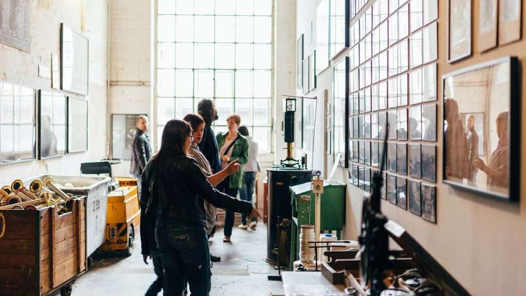 The move away from old industry is exemplified in the Plagwitz area, west of the city, where several spaces have been re-purposed out of former industrial sites, driving an emerging, lively creative quarter. Chief among these is the vast Spinnerei – once the site of Europe’s largest cotton-spinning mill, and covering the same area as more than twenty football fields, it became defunct in the early 1990s as the cotton industry struggled with the new post-1989 economic landscape, and has now emerged as a vast art and craft destination.